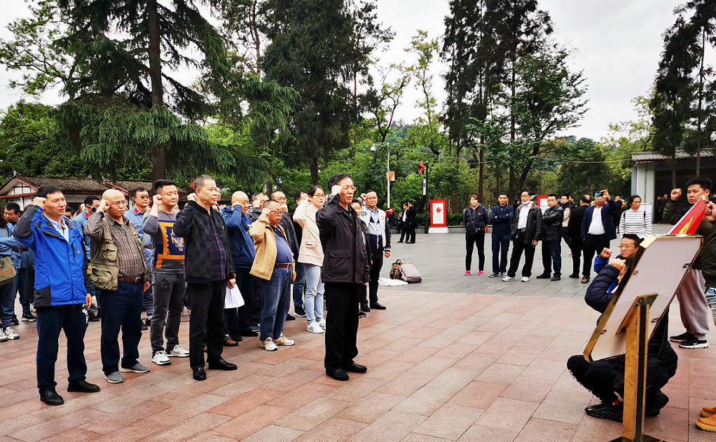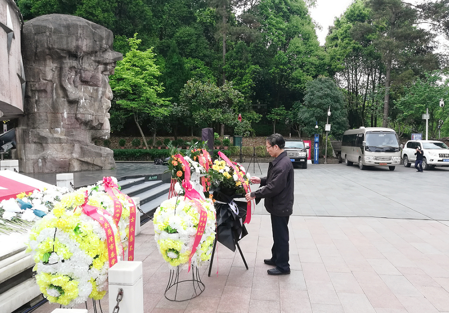 参观结束后,全体党员来到遵义红军山烈士陵园,在红军烈士纪念碑前,党支部书记、台长罗正明代表全体党员干部向红军烈士纪念碑敬献了花篮,他仔细整理花篮缎带,伫立凝视。全体党员干部向革命先烈三鞠躬,瞻仰纪念碑。面对鲜艳的中国共产党党旗,罗正明带领全体党员同志举起右拳,重温了入党誓词。